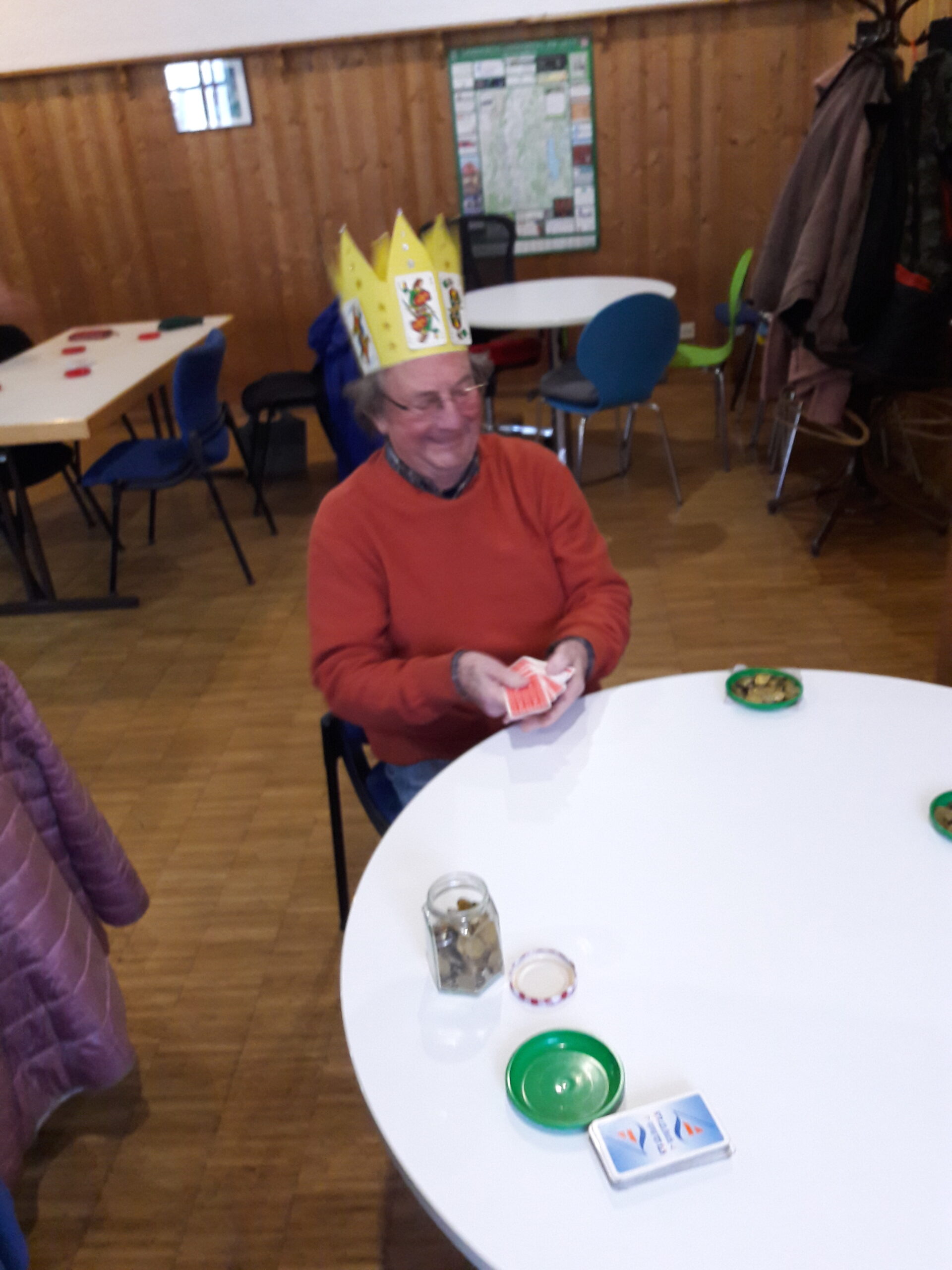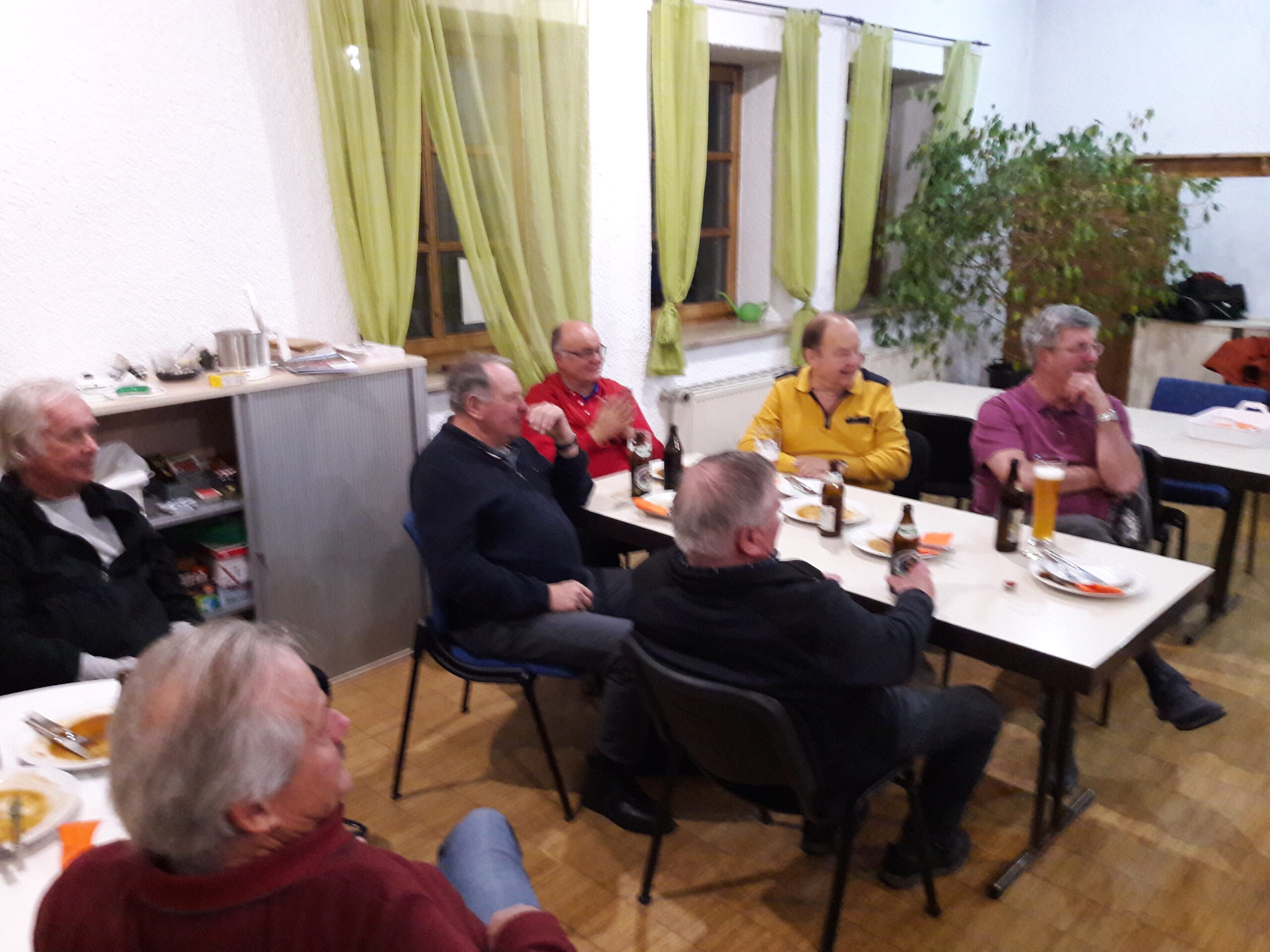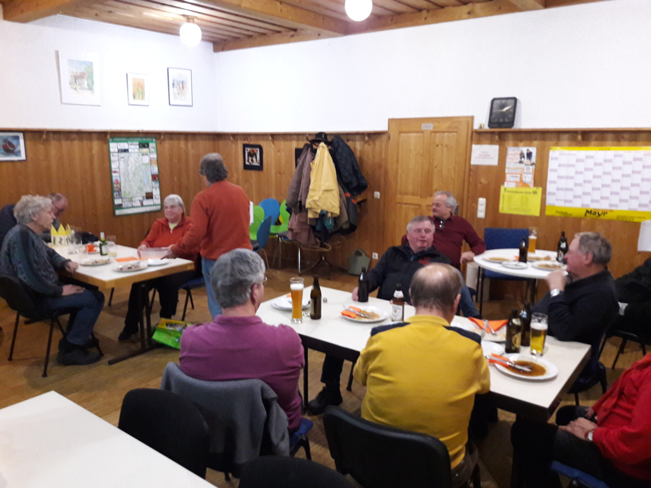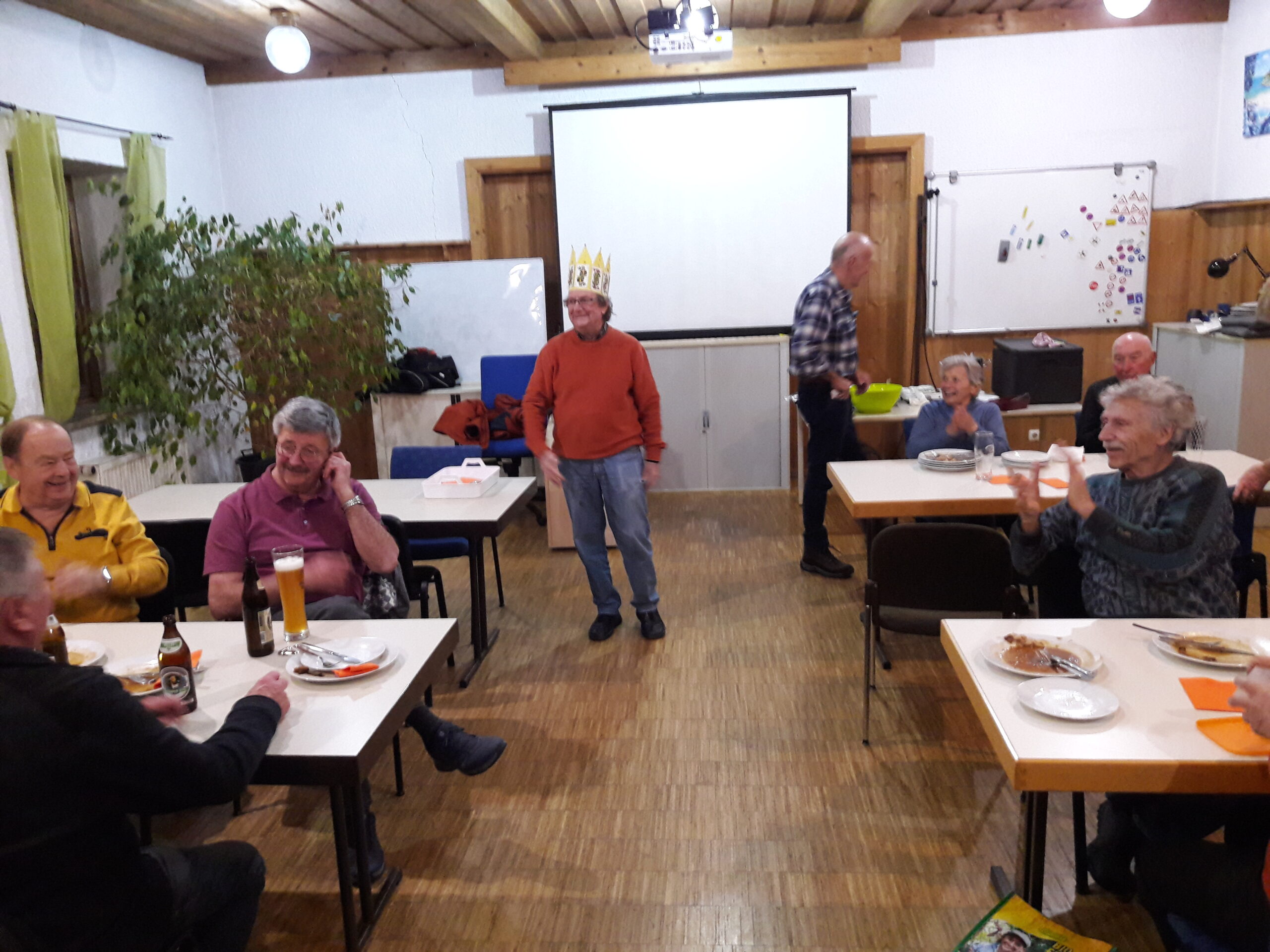 Seit Jahren gibt es beim Seniorentreff eine Spielegruppe, die sich jeden Dienstag im sogenannten Fahrschulraum der Gemeinde trifft. Es gibt dort 2 Partien Schafkopf und eine Gruppe, die zumeist Canasta spielt. Gerhard Altschäffl aus dieser Runde nahm auch am Schafkopfturnier bei Schützen in Windach teil und gewann als erster Windacher nach langer Zeit den 1. Preis, also eine Menge Fleisch und Wurst. Was also macht man mit so einer Menge Fleisch, wenn man selbst eigentlich kein allzu großer Fleischesser ist. Aber Gerhard hatte eine geniale Idee. Er wandte sich an Martin Schreyegg, ob dieser ihm das Schweinefleisch braten könnte mit einer schönen Sauce, die dazu benötigten Semmelknödel würde Otto Brösdorf liefern. Nachdem er auch noch bei der Boulegruppe mit dabei ist, konnte er auch seine Freude mit dazu einladen und so feierten wir alle zusammen im Fahrschulraum unseren Schafkopfkönig. Der köstliche Schweinebraten und über 40 Semmelknödel reichten locker für die insgesamt 19 Personen und wurde es eine gelungen Feier.